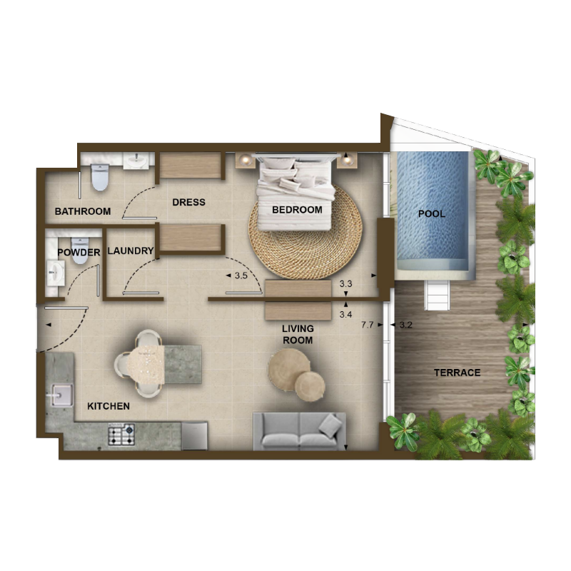 105 Residences by Kamdar is a masterpiece of modern luxury, offering a selection of stunning studio, one-bedroom, and two-bedroom apartments, including exclusive units with private pools. Nestled in the heart of Jumeirah Village Circle, this exquisite development is designed to provide residents with a sophisticated and serene living experience. Every home boasts impeccable design, high-end finishes, and smart layouts that maximize space and comfort.