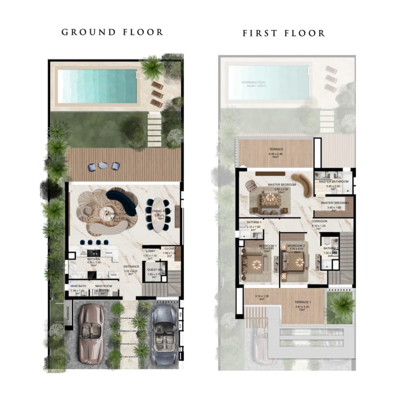 Al Jurf is surrounded by an extensive network of parks, gardens, and shaded walkways, complemented by world-class amenities such as a marina, wellness retreats, and recreational facilities. It’s a haven for nature lovers, with protected wildlife and over 100,000 trees forming a lush green canopy throughout the area.