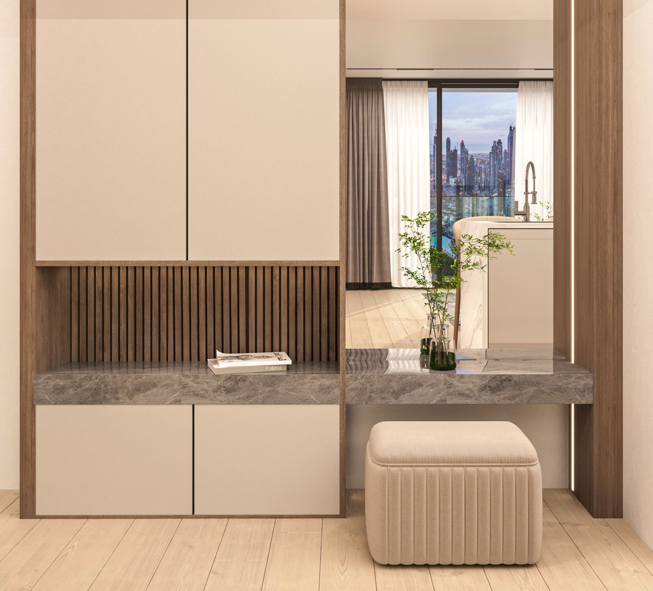 Embark on a journey of holistic well-being at esteemed residential community where wellness amenities abound to cater diverse needs of its clientele. The hyper-tower features a collection of curated amenities to cultivate every aspect of wellness from expansive swimming pools, dedicated interactive kids play area to paddle court. The hyper-tower transforms ordinary living spaces into veritable works of art that is unmistakenly Binghatti. The main lobby boasts an ambiance of understated opulence and unparalleled artistry.