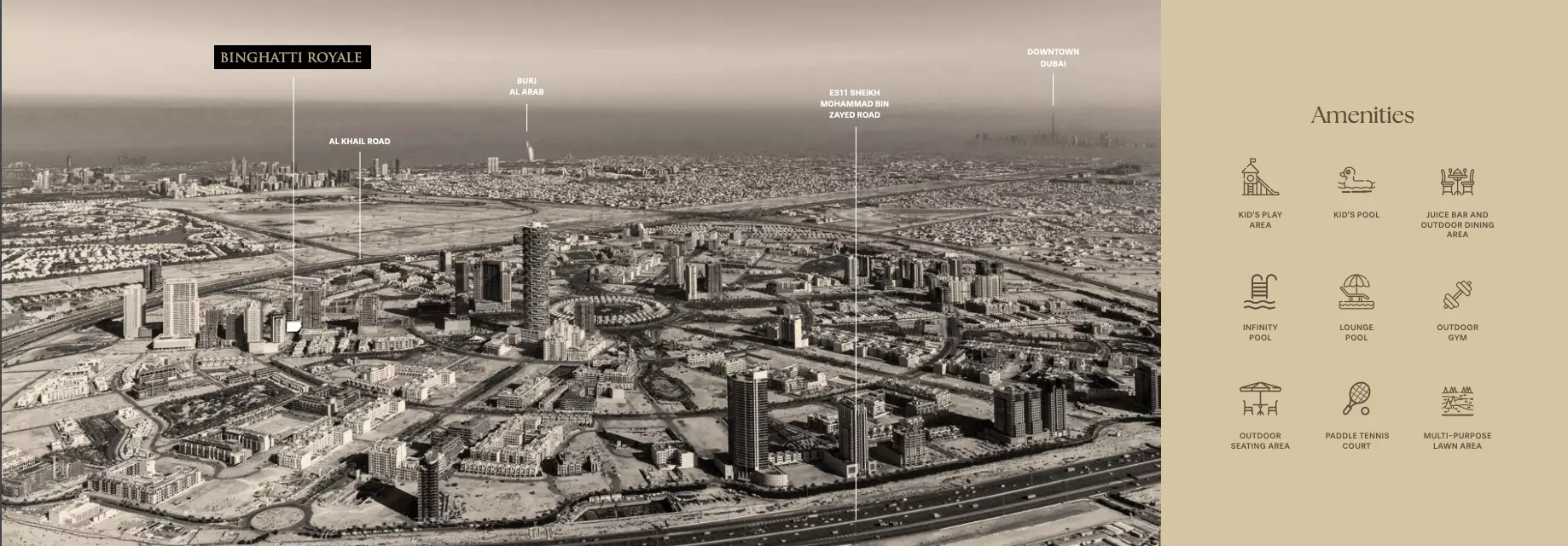 Dubai, a city known for its opulence and innovation, is the proud home of Binghatti Royale. The project's location offers a blend of urban sophistication and suburban serenity, presenting residents with a lifestyle that is as luxurious as it is convenient.