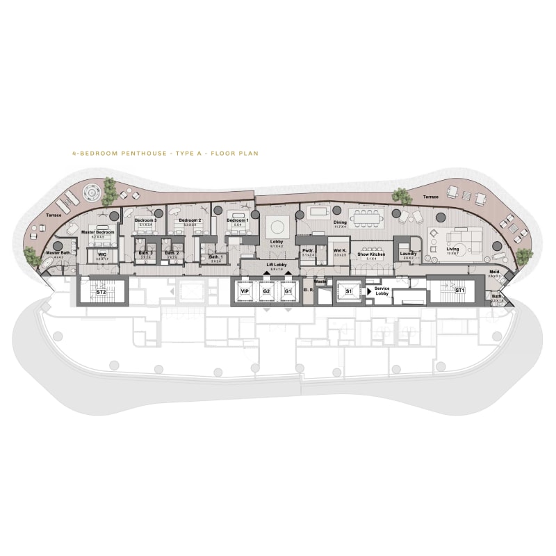 Introducing the Bulgari Lighthouse. Sublime living spaces suspended between sea and sky. Reflecting the Bulgari values of unrivalled craftsmanship, thoughtful precision, and timeless elegance. A treasured natural material, coral is both a literal and metaphorical inspiration for the building design, providing protection, privacy, and peace. A building born out of its magnificent location; a private island secluded in the middle of the sea. Consisting of 4 and 5-bedroom penthouses, the Bulgari Lighthouse offers a selection of diverse living spaces and interior layouts. As the penthouses increase in size and scale, additional features include a private pool and private lift access. The tower stretches and lightens as it extends higher into the sky with the distance between the architectural coral plates broadening to allow space for larger interior living areas.