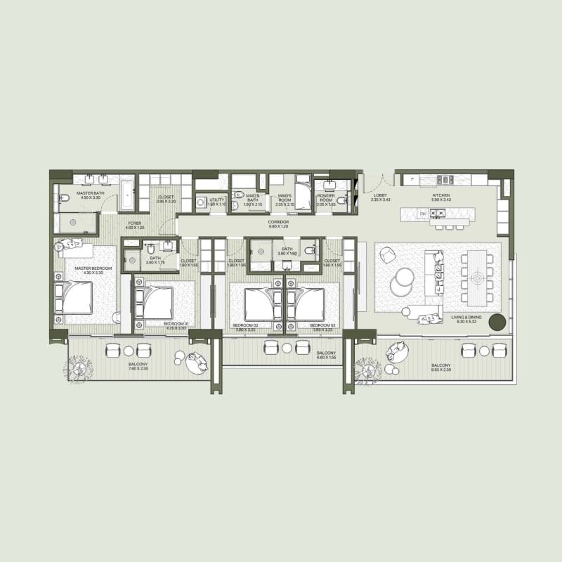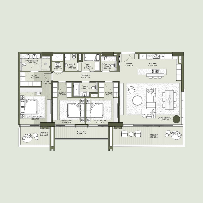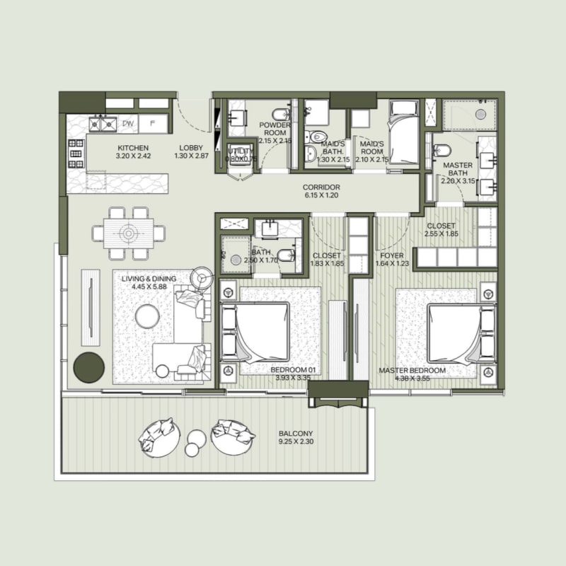 Within Central Park Plaza, you'll discover a range of thoughtfully designed apartments, each exuding elegance and harmoniously blending functionality with aesthetics.