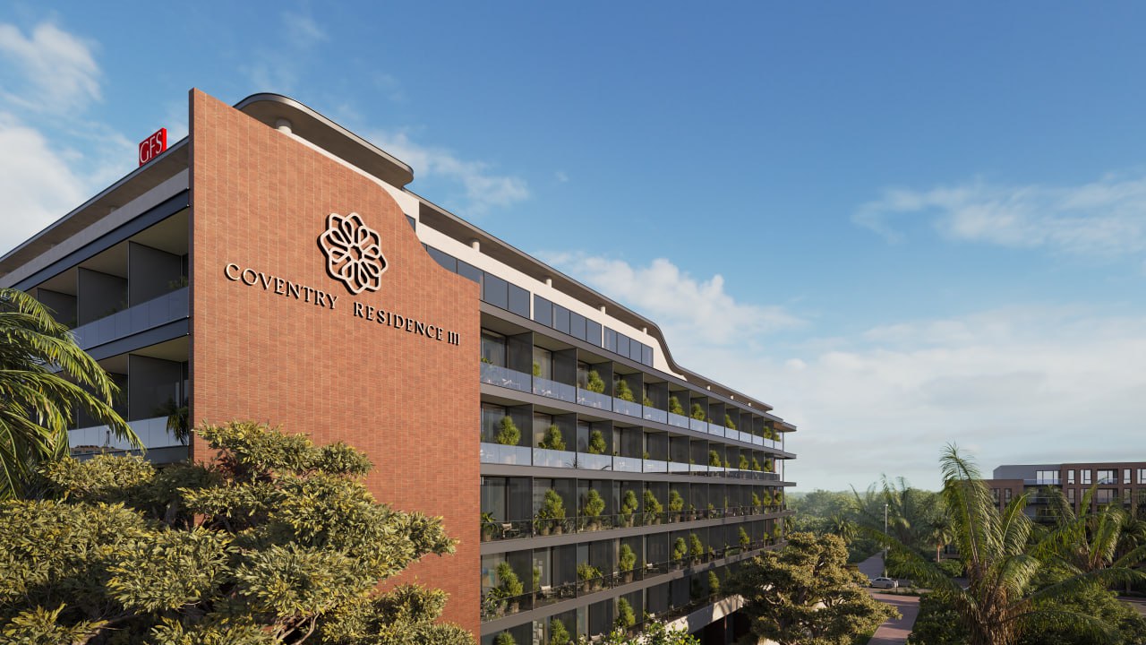Coventry Residences III is a refined development that reimagines contemporary living through clean geometry, elegant materials, and a distinctive red-brick façade. Rising across five residential floors above a stylish podium, the architecture seamlessly blends urban sophistication with a warm, timeless aesthetic. From the moment you arrive, the building makes a statement of elevated simplicity — offering limited residences wrapped in expansive glass, soft lighting, and welcoming symmetry.