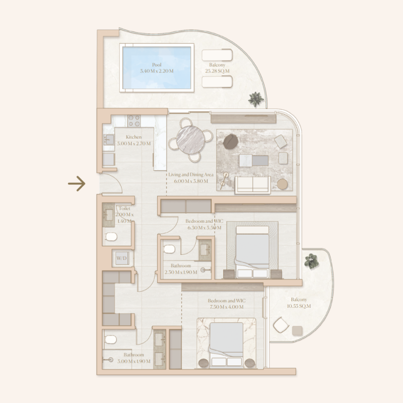 Crafted with impeccable attention to detail, the interiors of Esmé Beach Residences radiate elegance and sophistication. Natural materials, rich wood accents, and travertine finishes create a harmonious living environment that echoes the beauty of the surrounding beach landscape. With unparalleled space, breathtaking views, and a lifestyle curated for well-being, Esmé Beach Residences stands as a testament to excellence in beachfront living.
