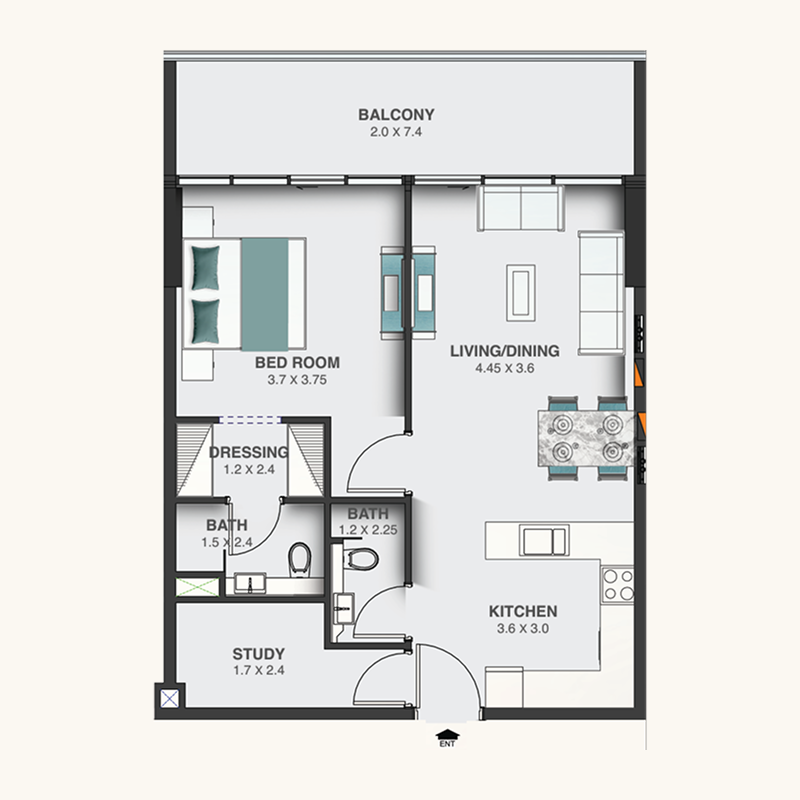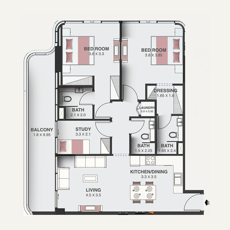 Each residence — ranging from studios to two-bedroom apartments — has been thoughtfully planned to optimize light, comfort, and space. Floor-to-ceiling windows, European-branded wood finishes and Italian tiles create a harmonious living environment that reflects modern luxury. The interiors echo prestige, offering a calming ambiance paired with functional elegance — ideal for both personal comfort and long-term value.