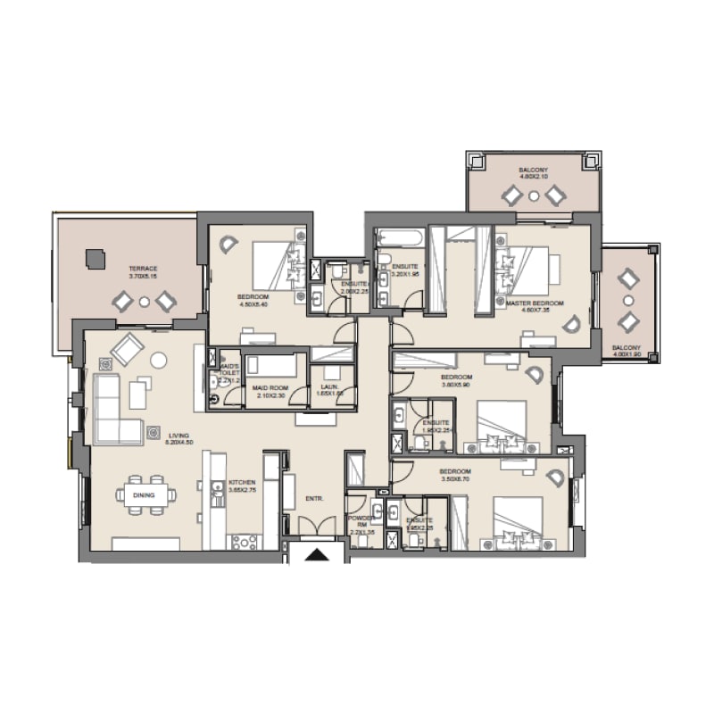 A central pedestrian walkway meanders through Madinat Jumeirah Living, providing access to private community entrances. Communal roof terraces with BBQ areas also offer magnificent views of Madinat Jumeirah, Burj Al Arab and the sea.