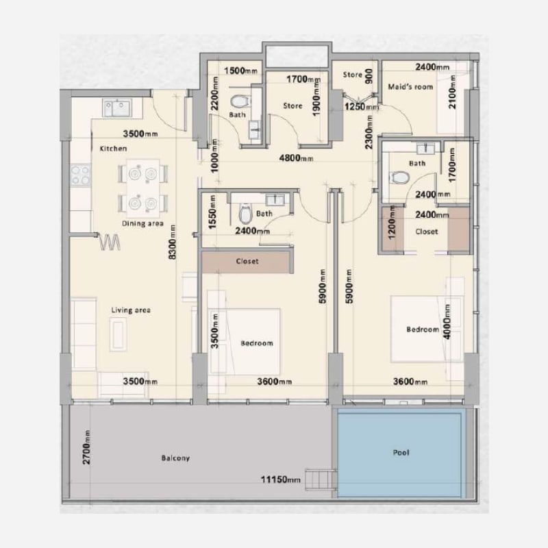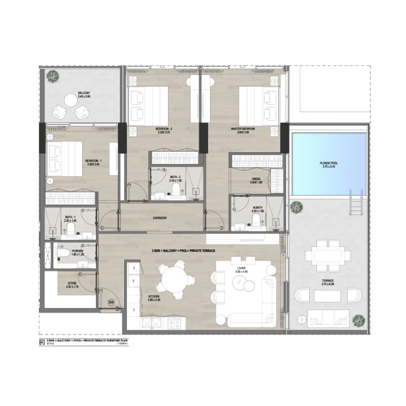 The well-thought-out configurations of the apartments redefine elevated living, featuring balconies that seamlessly merge indoor comfort with outdoor serenity. What distinguishes this development is the inclusion of a pool within each apartment, adding an exclusive touch to the living experience. With meticulous attention to detail, NAS 3 captivates residents and offers a glimpse into the pinnacle of luxury living.