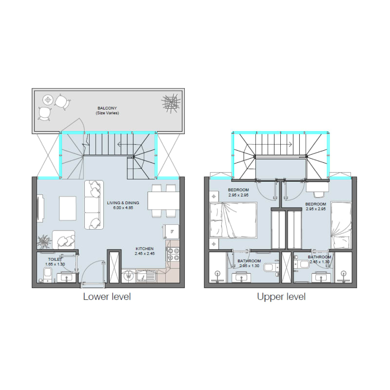 Step into spacious duplex rooms that exemplify forward-thinking fashion, incorporating neutral colors and modern interior designs. These exceptional duplex apartments offer more than just a living space; they offer an experience. With large windows allowing for panoramic views and abundant natural light, every corner of your apartment feels connected to the outside world.