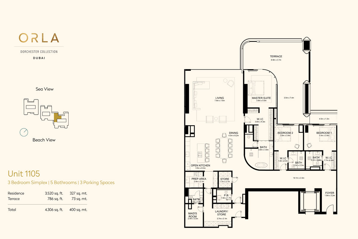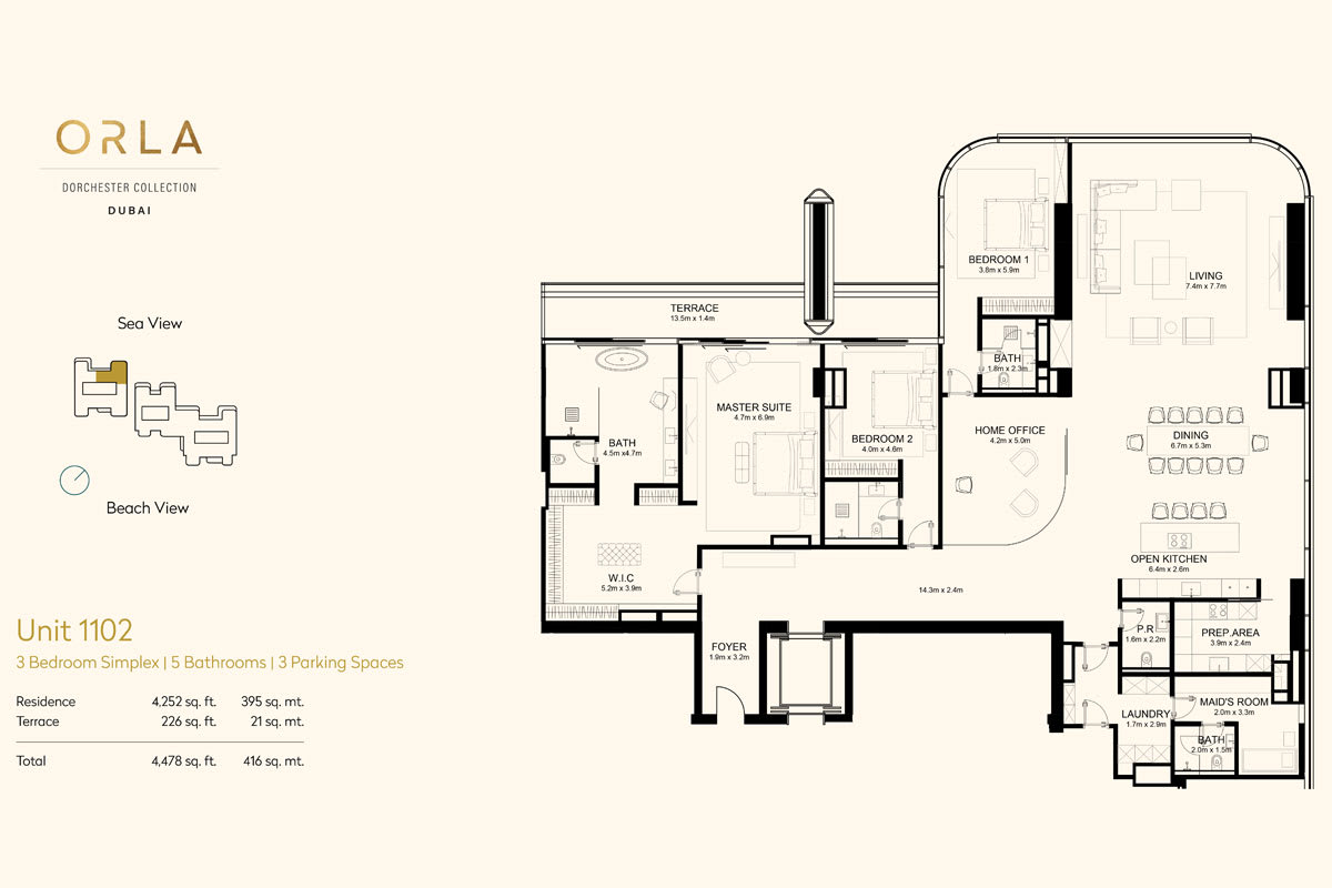 Orla by Omniyat offers a variety of unit types and sizes, catering to different preferences and needs. Here are some of them:
