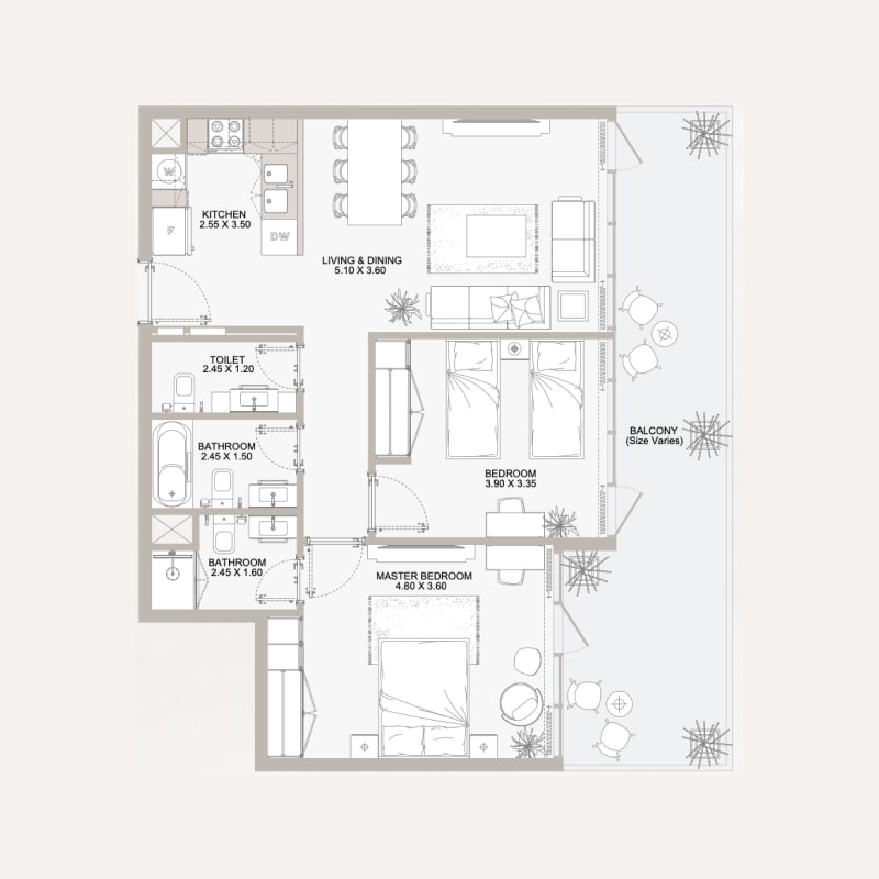 Every residence in Reportage Plaza 2 exemplifies both class and modernity. The living spaces are meticulously designed to meet a variety of needs and preferences, with high-quality finishes and a neutral color scheme. Kitchens feature premium cabinets and scratch-free countertops, while bathrooms are fully tiled and include bathtubs and showers. Each unit is meticulously crafted, ensuring functionality and refined taste in every corner.