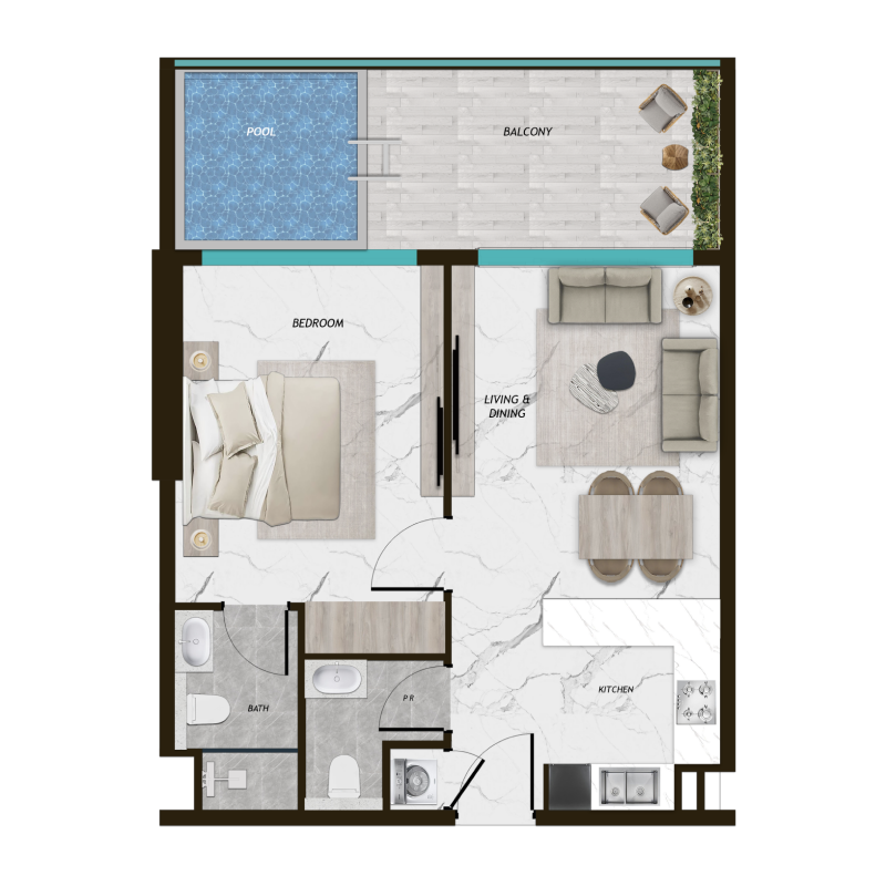 Samana Parkville is a masterpiece of modern luxury, offering a selection of studio, one-bedroom, and two-bedroom apartments, each featuring a private pool. Designed to intertwine elegance with timeless sophistication, every residence is crafted with meticulous attention to detail, ensuring that comfort and style are seamlessly blended. With sleek interiors, open spaces, and a serene ambiance, these homes provide an unmatched retreat from the ordinary.