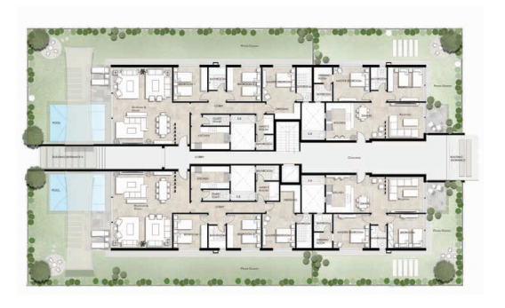 The compound aims to provide a comprehensive living experience with a range of services and facilities.