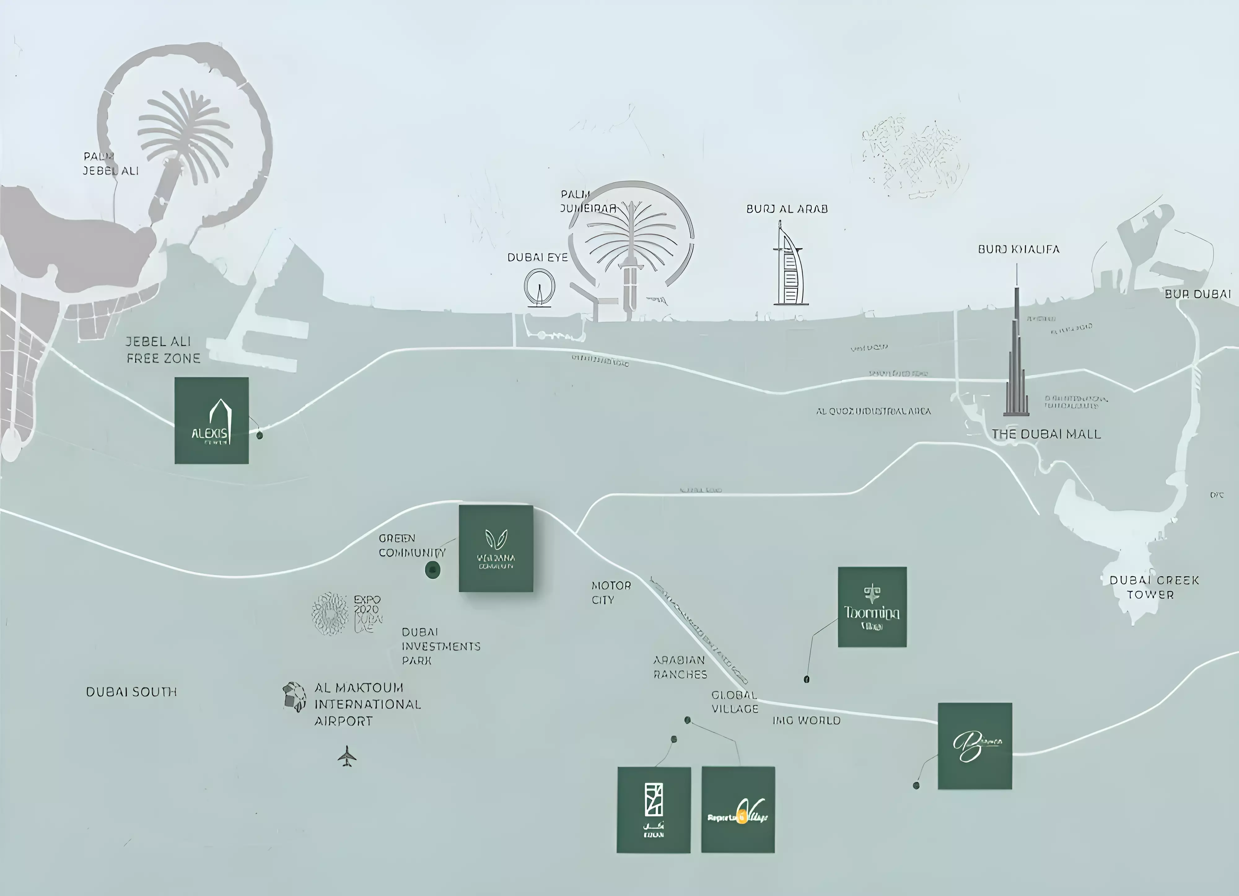 Verdana Residence 10, located in the heart of Dubai Investments Park, offers easy access to Dubai's major thoroughfares, including Sheikh Zayed Road and Emirates Road. This strategic location enables homeowners to easily access key locations while enjoying a peaceful atmosphere well-integrated with essential facilities. The dynamic neighborhood is designed to appeal to families and individuals seeking the ideal balance of relaxation and accessibility.