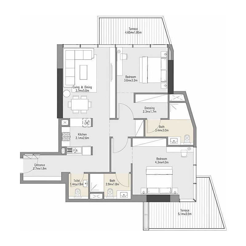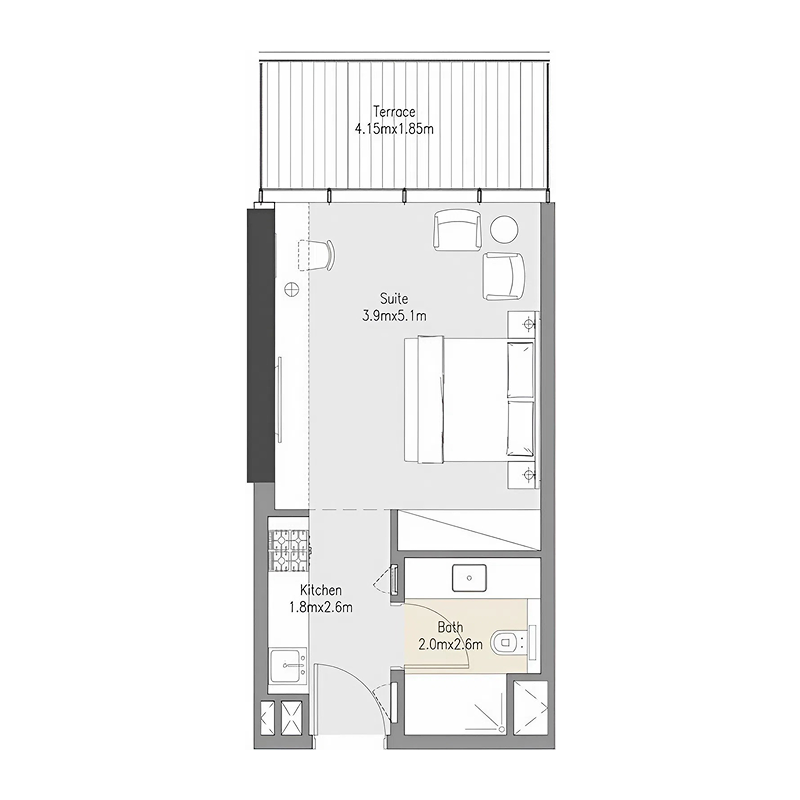The development features a refined collection of studio, one-, and two-bedroom apartments, each thoughtfully planned with private balconies, spacious layouts, and contemporary finishes. Interiors are designed to maximize light, space, and function, with high ceilings and a neutral color palette that invites personal style. Every unit reflects Amber’s attention to quality and livability, making Zenith an ideal choice for professionals, couples, and families seeking elegant yet practical living spaces.